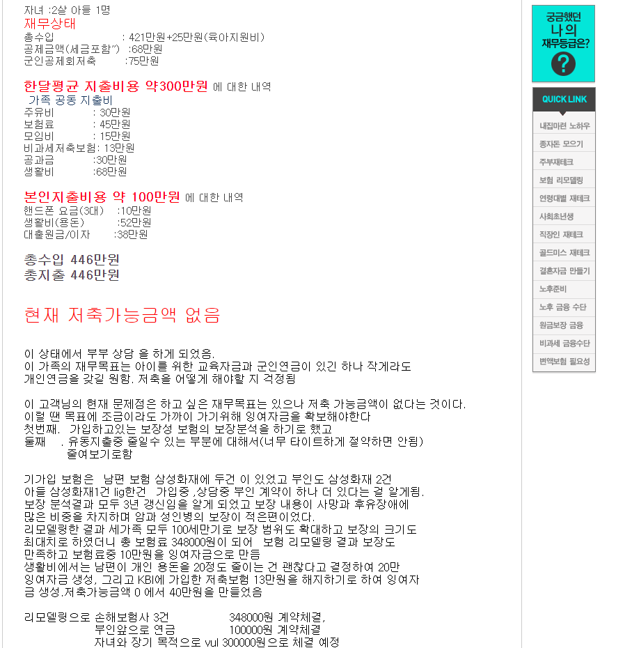 다음은 여럿 사람들이 재무설계를 한 사례를 살펴보면서