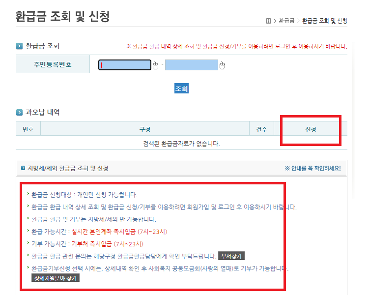 지방세 환급금은 국세청 홈페이지에서 조회가 가능합니다.
