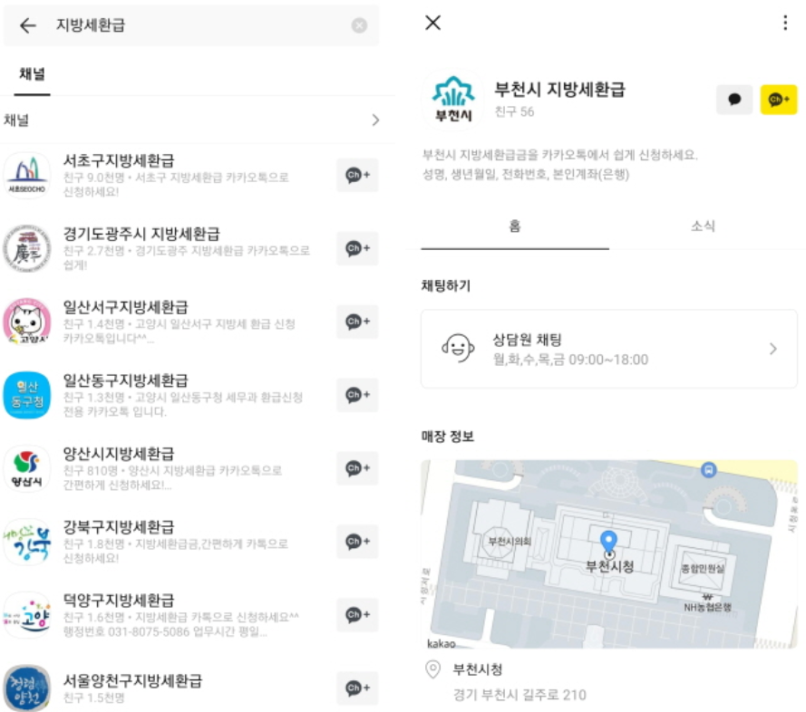 톡방에 참여하면 지방세 환급금 조회가 가능합니다.