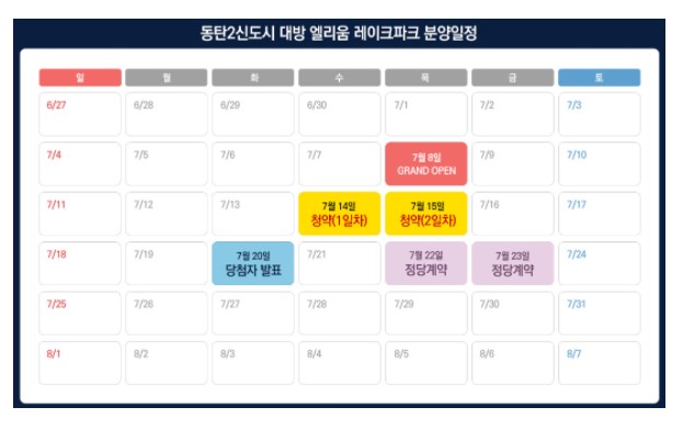 또한, 대방 엘리움 레이크파크의 분양일정은 다음과