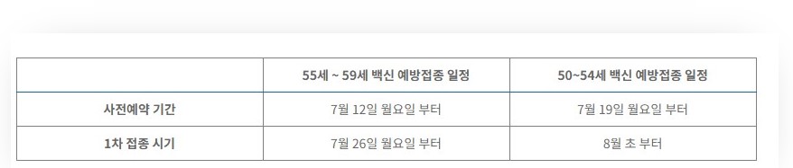 오는 7월 12일 50대 일반국민을 시작으로