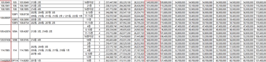 총 44개라서 분양가도 매우 다양하게 나옵니다.