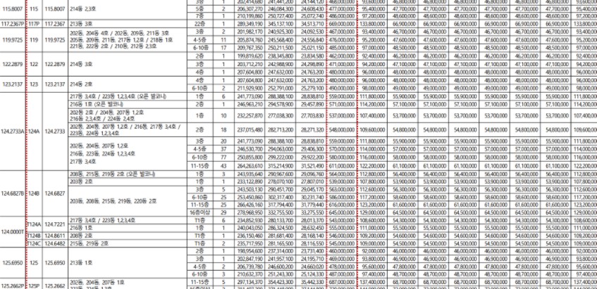 평당 1257만원을 시작으로 해서