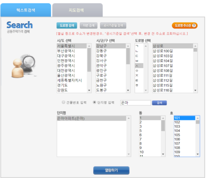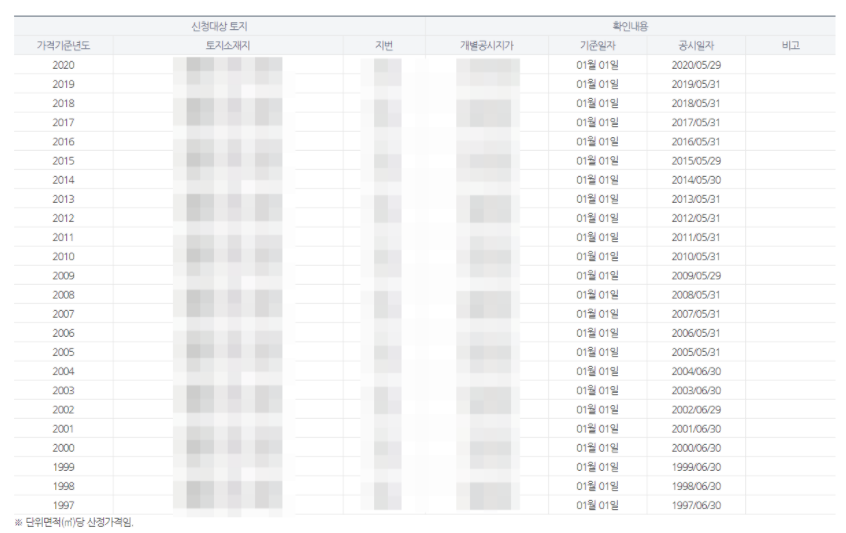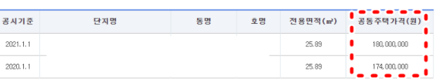위 사진과 같이 아파트 공시지가 정보를 확인할수 있습니다.