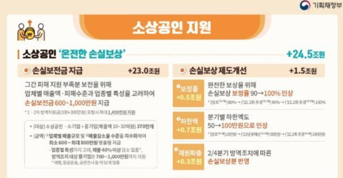 그동안의 피해지원 부족분을 보전하기 위해 업체별로 매출액과 피해수준,업종별 특성을 고려해서 손실보전금을 600~1000만원씩 지급한다고 합니다.