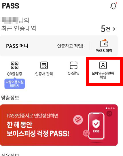 모바일 운전면허증은 PASS라는 앱을 통해서