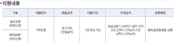 - 신용등급 6등급 이하 (연소득 3500만 원 이하는 신용등급제한 없이 신청 가능)